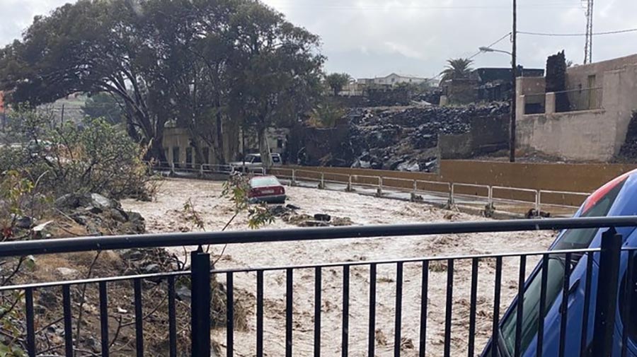 De regen die gisteren is gevallen op Gran Canaria heeft geleid tot overstroomde barrancos en voertuigen die door de stroming zijn meegesleurd in de gemeente Telde.